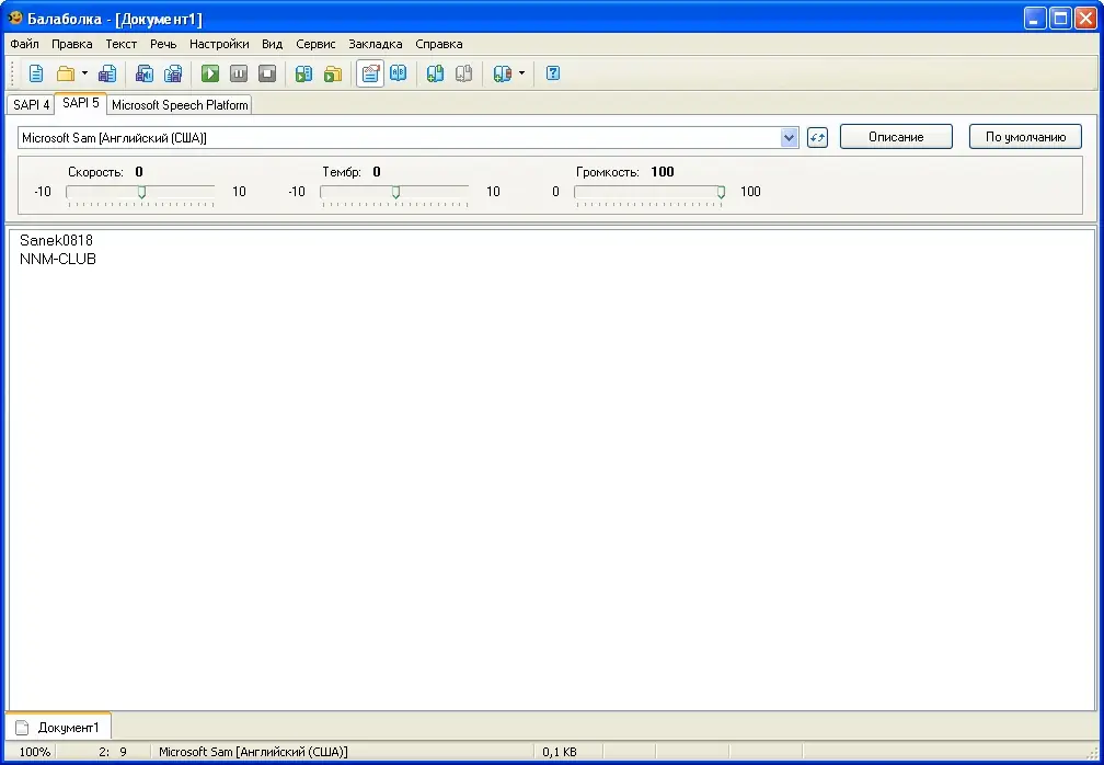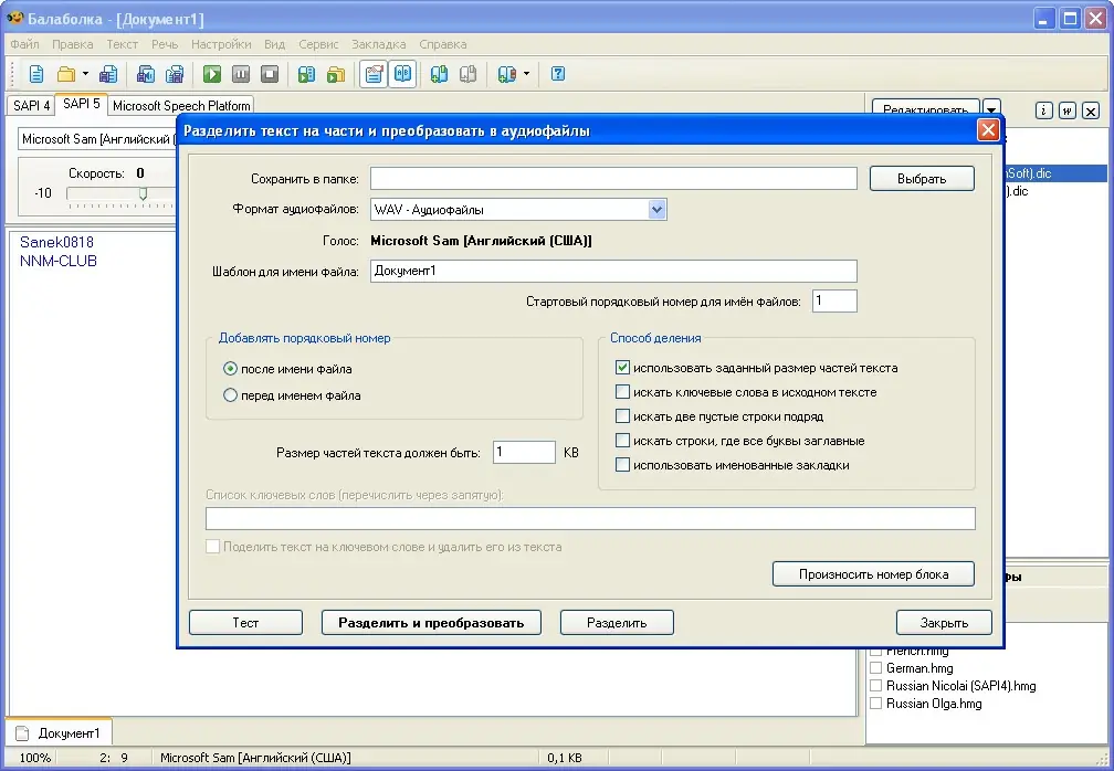 - Сохраняет озвученный текст в аудиофайлы различных форматов
