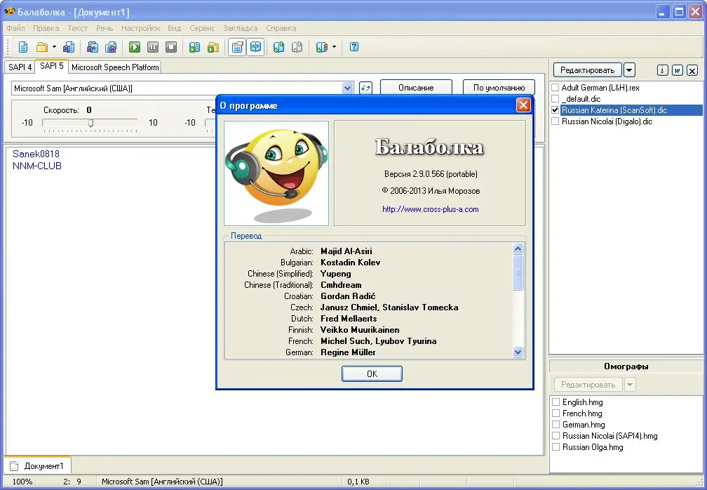 Balabolka — это программное обеспечение для озвучки текста, разработанное под платформу Windows. Оно использует технологии текстового синтеза речи и поддерживает различные голосовые движки, включая разные версии Microsoft Speech API. Программа способна читать вслух содержимое документов, веб-страниц и других текстовых файлов, при этом пользователь может настроить темп, высоту и интонацию голоса. Поддержка функций tts обеспечивает высокое качество преобразования текста в звук.