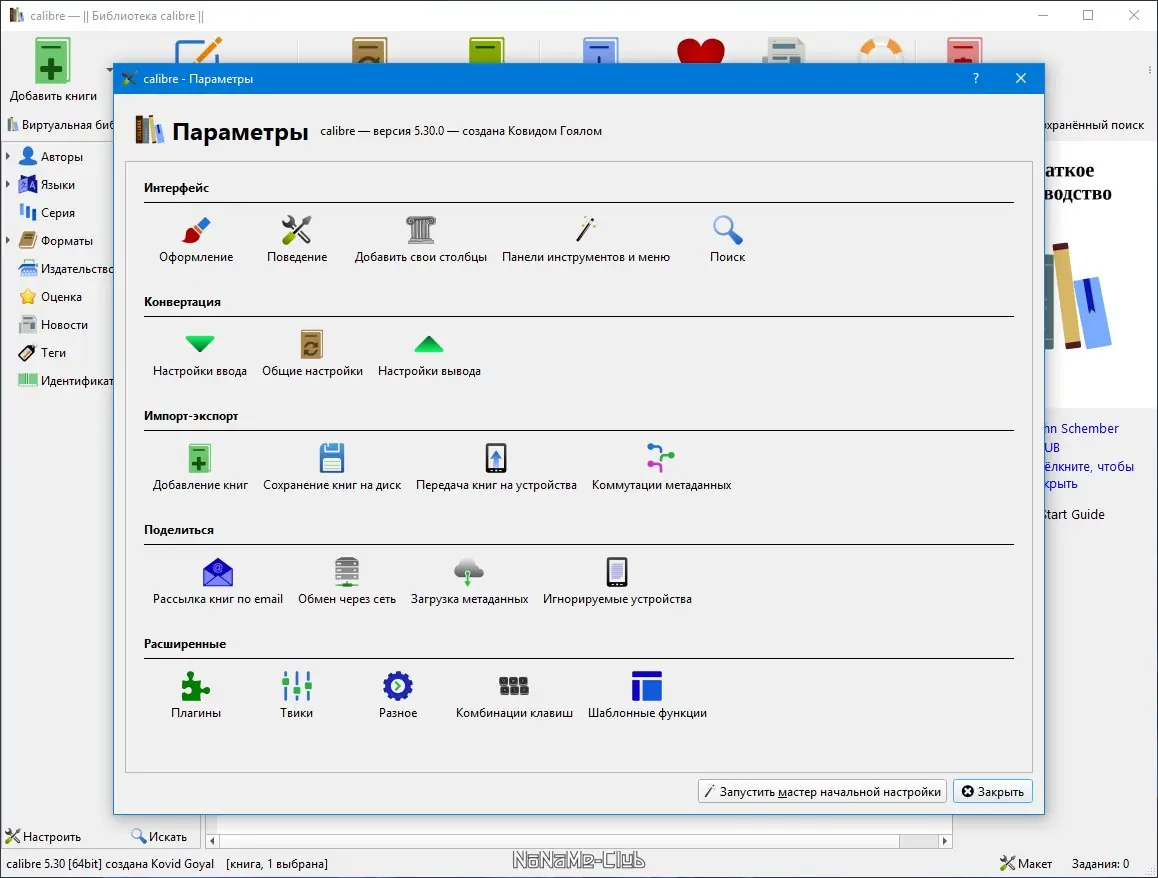 - Поддержка широкого спектра форматов для импорта и экспорта, включая EPUB, MOBI, PDF и другие
