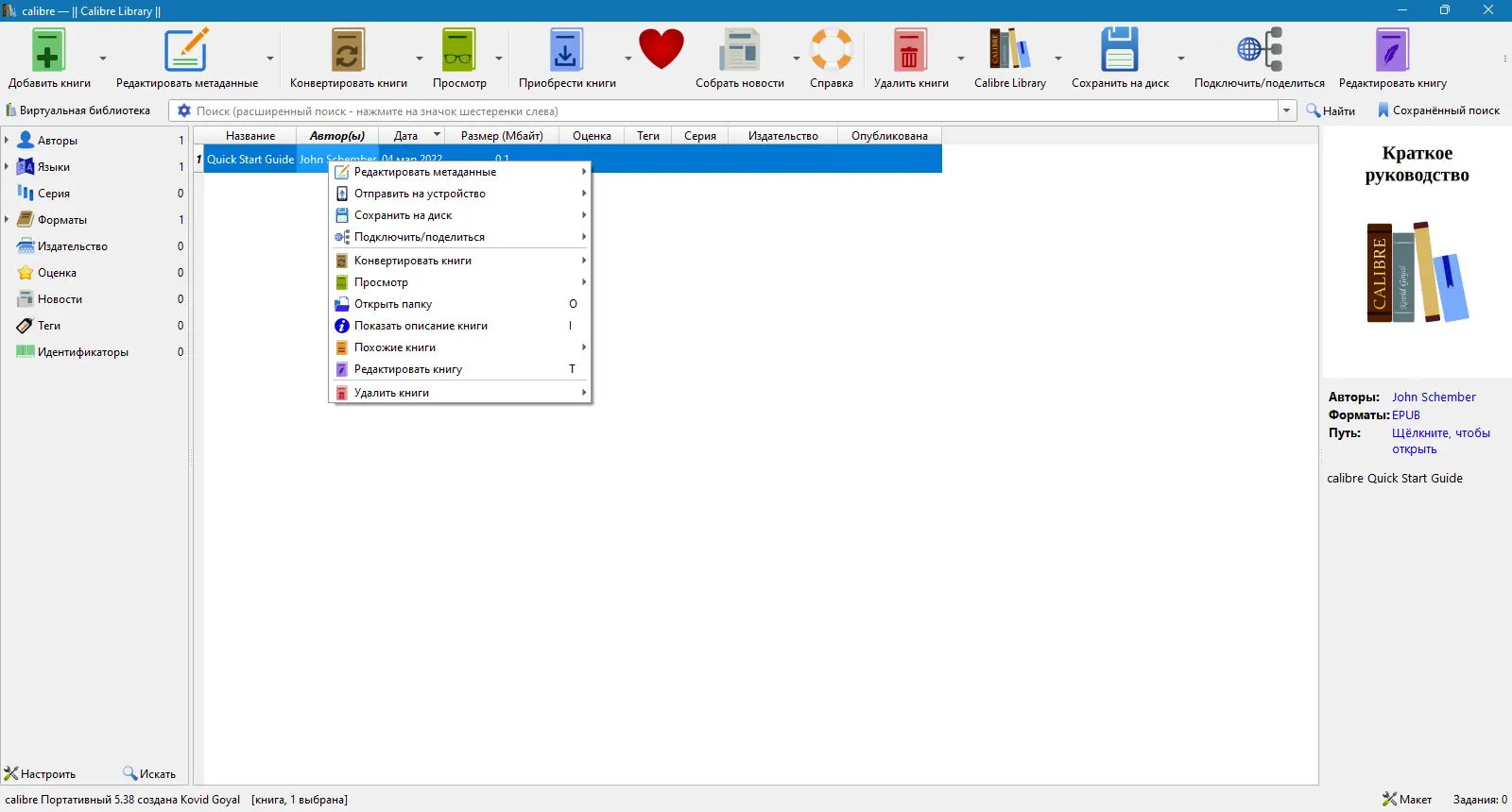 Calibre объединяет в одном интерфейсе всё необходимое для полноценной работы с электронными изданиями.