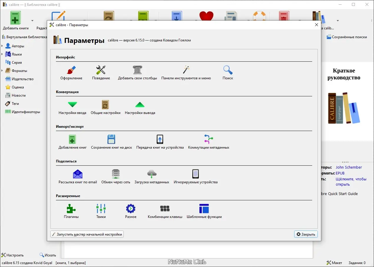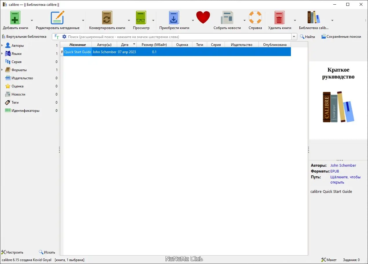 - Поддерживает широкий спектр форматов для импорта и экспорта, включая EPUB, MOBI, PDF, FB2 и другие.