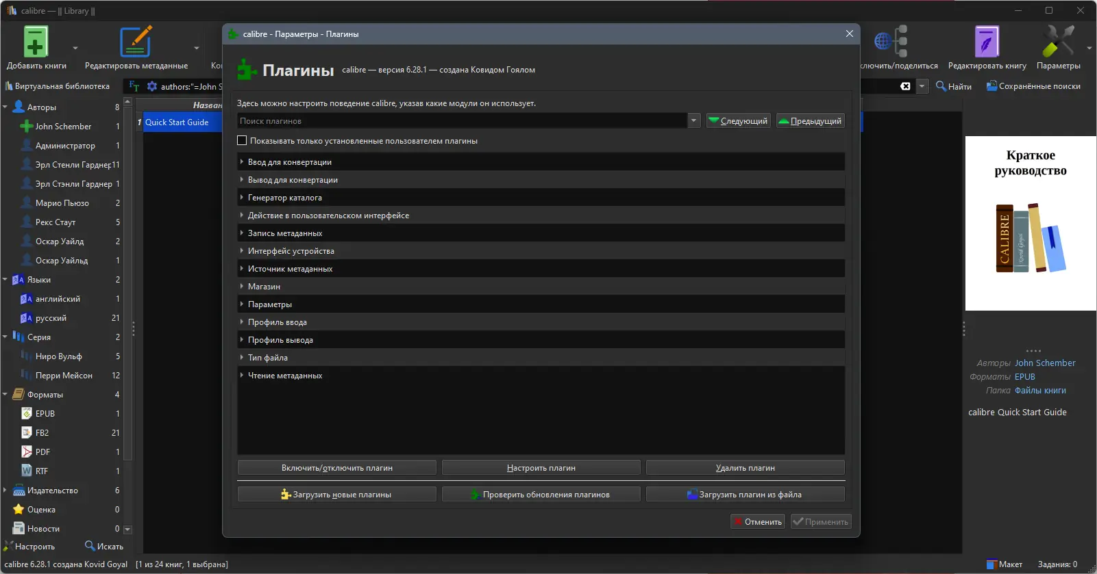 Calibre — мощная и универсальная программа для управления электронными книгами, которая помогает эффективно организовать библиотеку, конвертировать форматы и синхронизировать контент с различными устройствами. Поддержка множества форматов, встроенный конвертер, читалка и функция автоматического поиска метаданных делают её незаменимой для любителей цифрового чтения.
