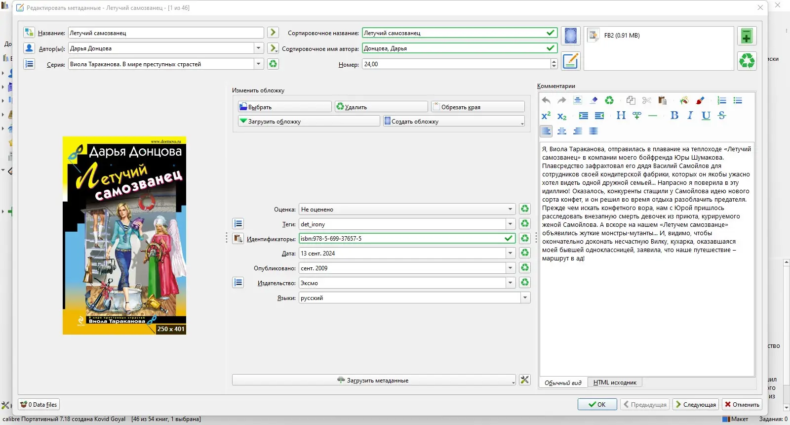 После запуска программа предлагает добавить книги в библиотеку через интерфейс импорта. Она анализирует файлы, определяет автора, название и год издания, а при необходимости загружает недостающую информацию. Пользователь может вручную корректировать поля, добавлять тег или комментарий. Далее книги можно конвертировать, отправлять на устройство или читать прямо в приложении. Через встроенный веб-сервер доступ к библиотеке возможен с любого устройства в локальной сети.