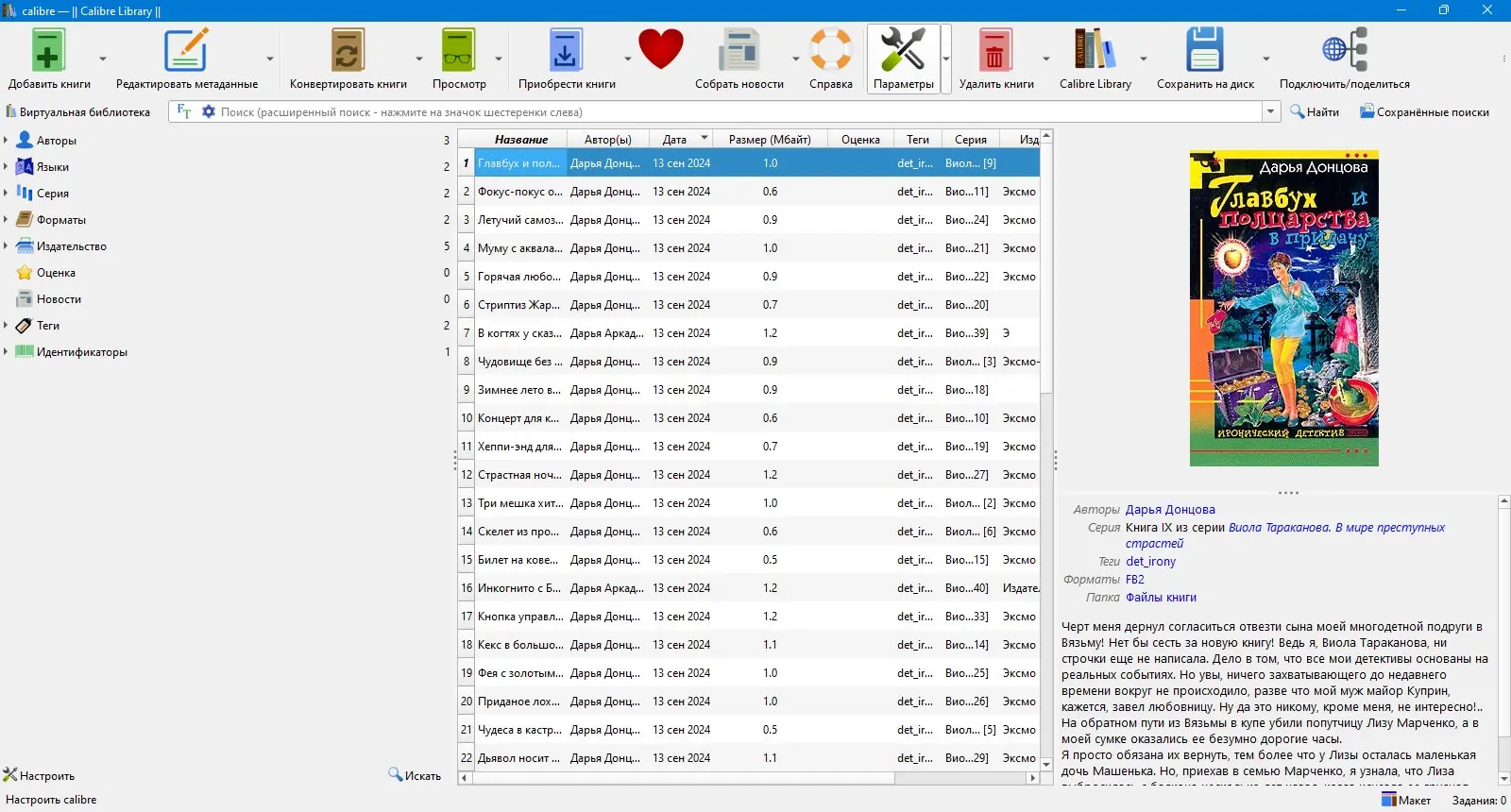 Calibre представляет собой комплексное решение для обработки и хранения электронных публикаций. Программа позволяет централизованно управлять библиотекой, включая автоматическое извлечение метаданных, загрузку обложек и сортировку по авторам, сериям и тегам. Каждая книга сохраняется в единой структуре, что упрощает поиск и дальнейшее использование материалов.