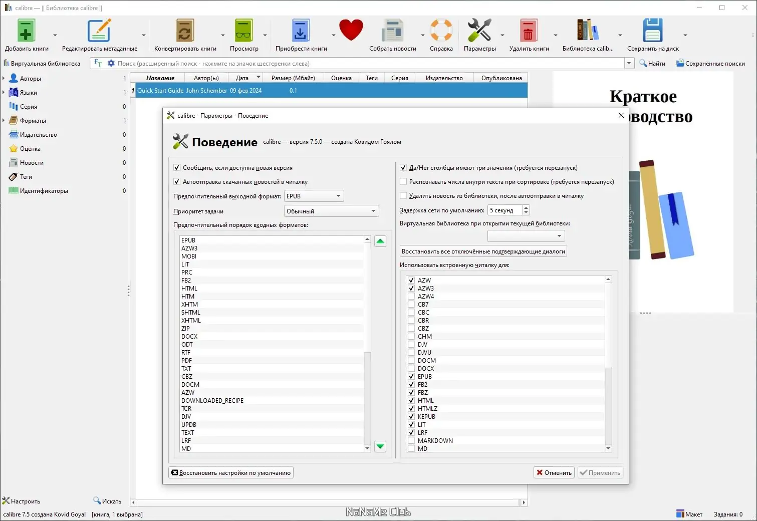 - Поддержка широкого спектра форматов электронных книг как для импорта, так и для экспорта