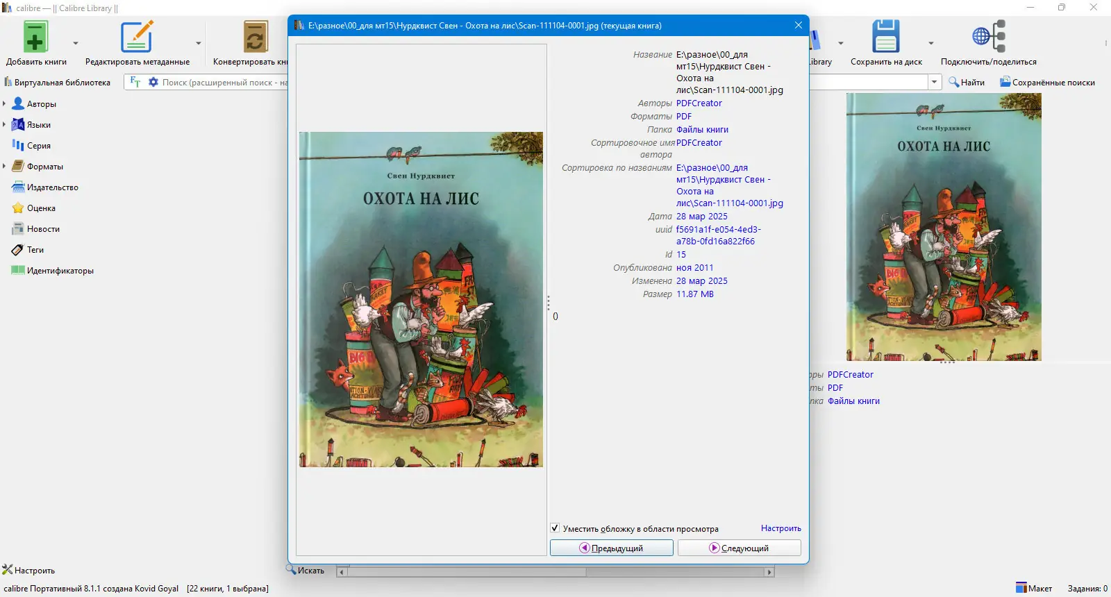 - Организация книг в единую библиотеку с поддержкой метаданных и обложек
