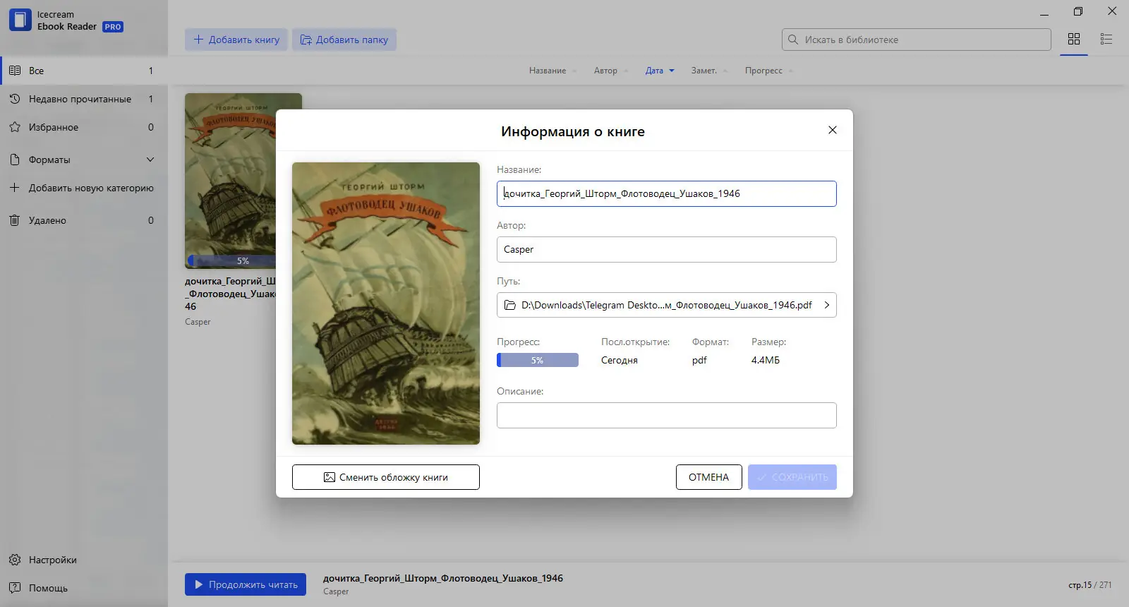 IceCream Ebook Reader — это приложение для чтения электронных книг, разработанное для пользователей, которые ценят удобство и функциональность. Программа поддерживает широкий спектр форматов, включая ePub, MOBI, FB2, PDF, CBR и другие, обеспечивая совместимость с большинством доступных электронных изданий. Интерфейс простой и ориентирован на минимализм, позволяя сосредоточиться на содержании, а не на настройках.