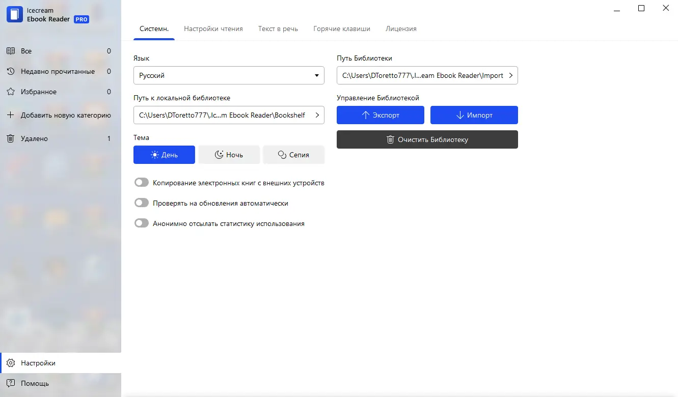 Работа с IceCream Ebook Reader