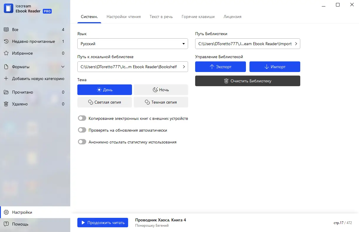 Работа с IceCream Ebook Reader