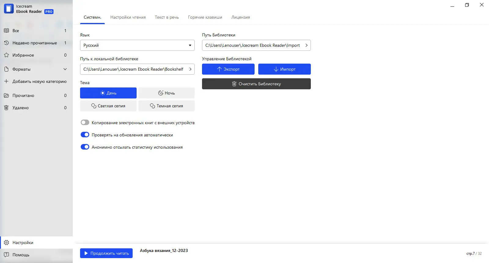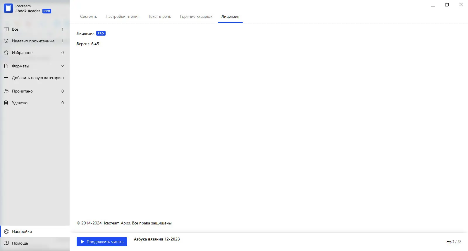 IceCream Ebook Reader — это современное приложение, разработанное для чтения электронных книг на персональных компьютерах под управлением Windows. Программа поддерживает широкий спектр форматов, включая ePub, MOBI, FB2, PDF, CBR и другие, что делает её универсальным решением для любителей литературы в цифровом виде. Интерфейс приложения минималистичен и ориентирован на комфортное чтение без отвлекающих элементов.