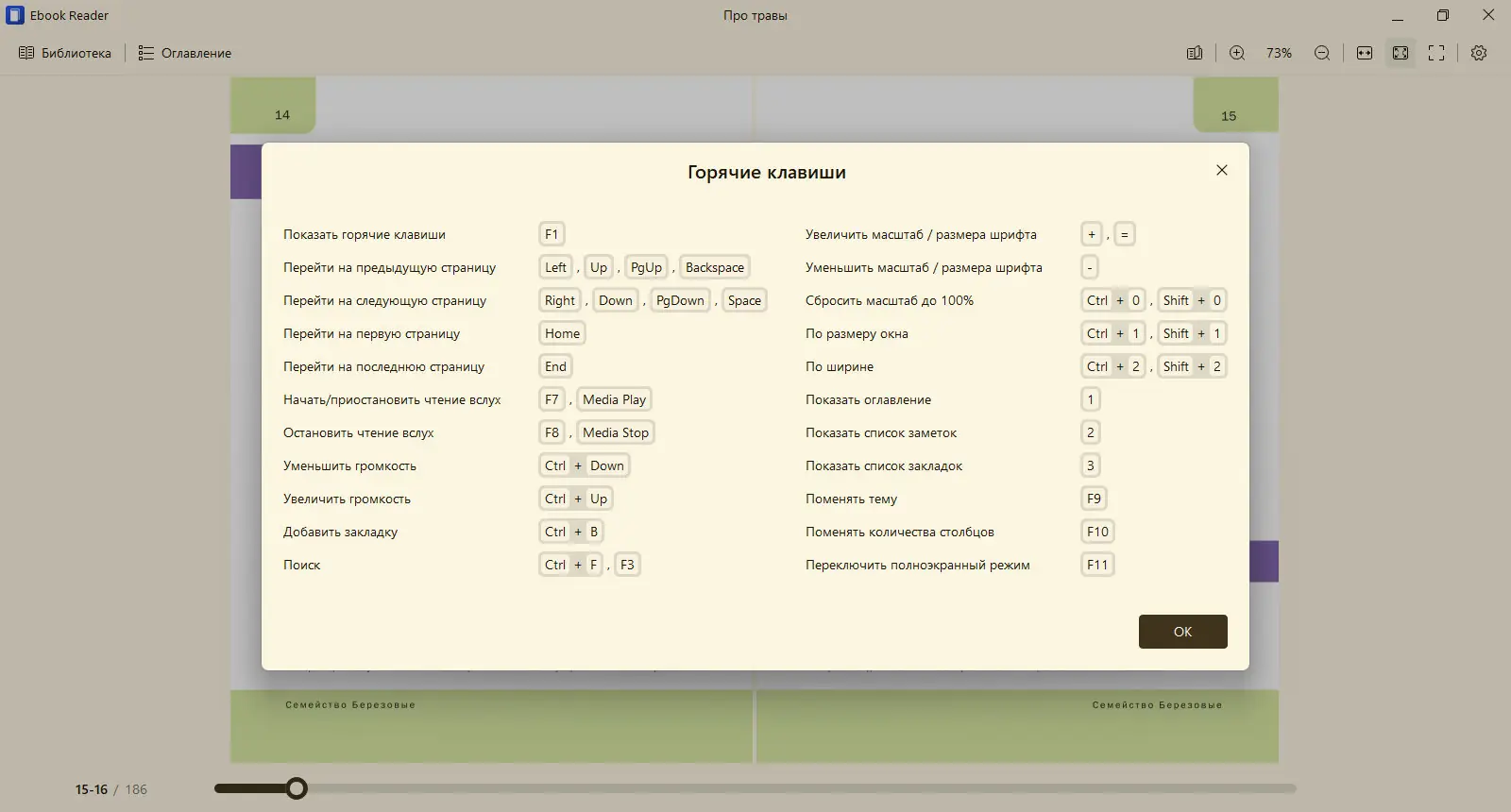 - Поддержка форматов ePub, MOBI, FB2, CBR и других