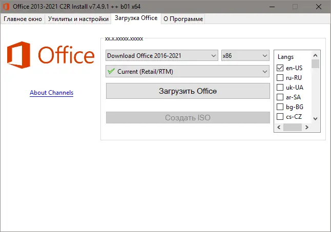 - Позволяет скачать microsoft office в нужной конфигурации, включая выбор версии, языка и разрядности.