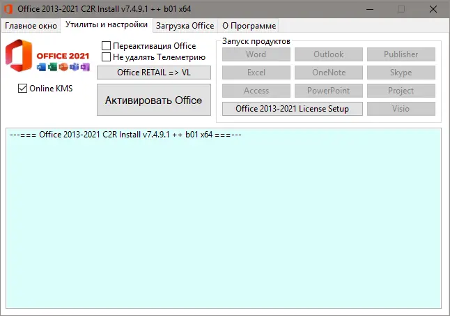 Утилита для установки и настройки Microsoft Office 2013–2021 с поддержкой выбора версии, языка и разрядности. Позволяет создавать офлайн-дистрибутивы, конвертировать редакции и активировать пакет. Включает инструменты для глубокой настройки установки и совместима с системами на базе windows.