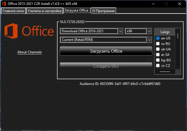Утилита для установки и настройки Microsoft Office 2013–2021 с поддержкой выбора компонентов, языка и активации. Программа позволяет скачать офисный пакет онлайн или создать оффлайн-дистрибутив для последующего развертывания без подключения к интернету. Поддерживается интеграция с системами лицензирования KMS и MAK, а также конвертация редакций.