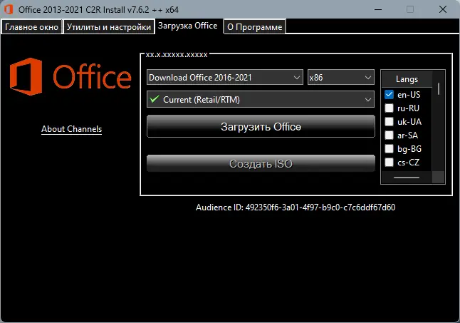 Программа позволяет гибко управлять установкой офисного пакета, включая выбор канала обновлений и сборки.