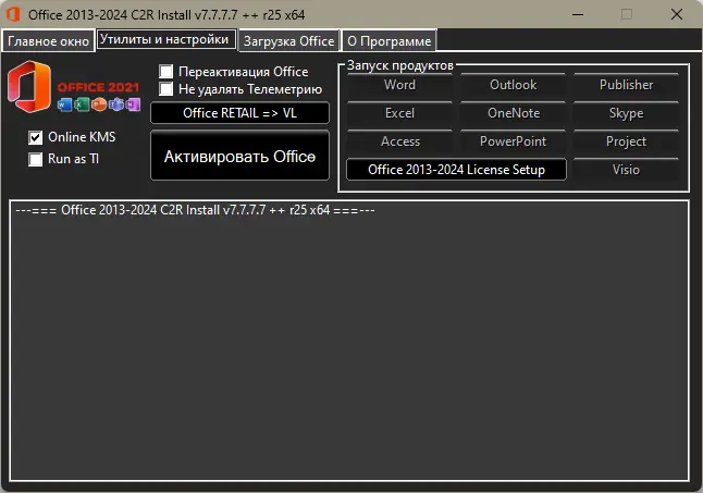 - Поддержка установки Microsoft Office с 2013 по 2021 версию включительно
