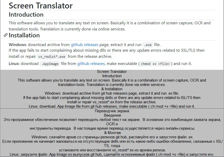 Screen Translator относится к категории экранных переводчиков, предназначенных для оперативного анализа и перевода текста, отображаемого на мониторе. В отличие от стандартных онлайн-сервисов, он не требует возможности выделения текста, что особенно полезно при работе с защищёнными сайтами, скриншотами или интерфейсами программ. Программа использует технологии OCR для распознавания и подключается к внешним переводчикам для трансляции. Она идеально подходит для пользователей, которым регулярно приходится взаимодействовать с иноязычным контентом на пк, включая документацию, форумы и веб-ресурсы.