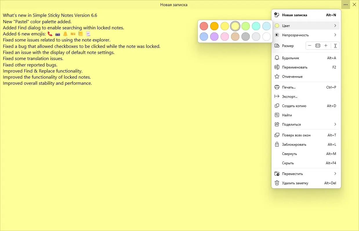 - Заметки можно закреплять поверх всех окон, скрывать или привязывать к краям экрана для удобного доступа.