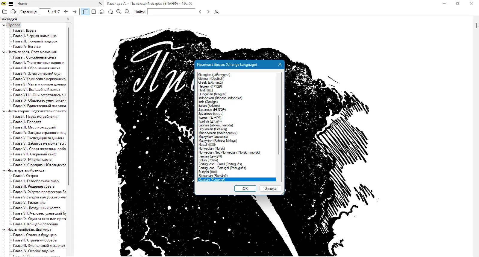 - Поддержка множества форматов: PDF, DjVu, FB2, ePub, MOBI, CHM, XPS, CBR, CBZ.