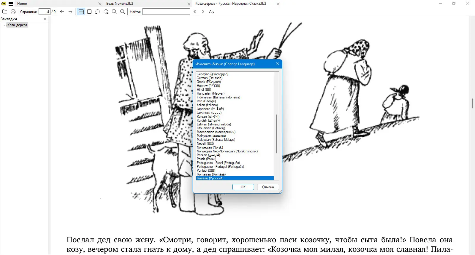 - Поддержка множества форматов: PDF, DjVu, FB2, ePub, MOBI, CHM, XPS, CBR, CBZ
