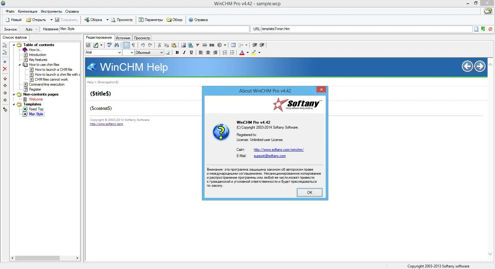 - Возможность редактирования уже скомпилированных CHM-файлов расширяет функционал