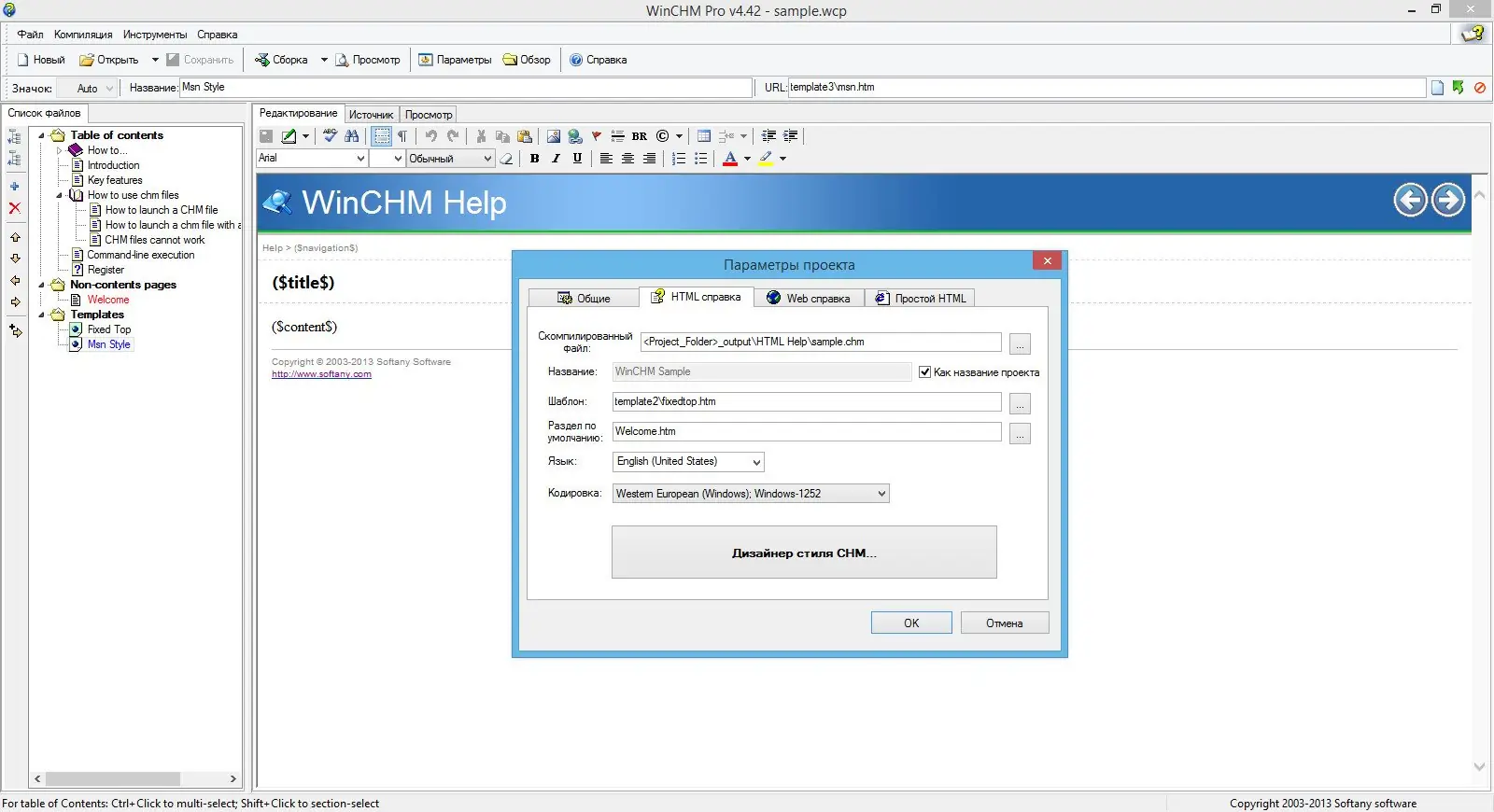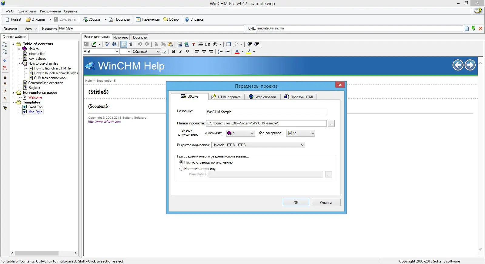 Работа с WinCHM начинается с создания нового проекта, где пользователь определяет тип выходного файла — CHM, веб-справку или документ. Далее, с помощью встроенного редактора, добавляются страницы, форматируется текст, вставляются изображения и гиперссылки. Для ускорения процесса можно использовать готовые web-шаблоны или импортировать HTML-файлы из внешних источников, после чего программа автоматически построит оглавление и индекс.
