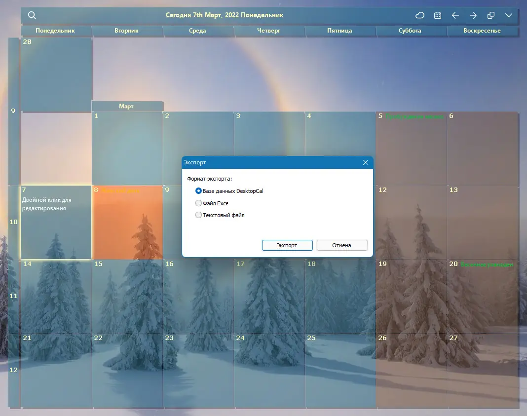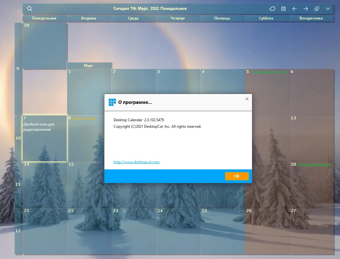 Desktop Calendar эффективно заменяет традиционные органайзеры, объединяя функции календаря, блокнота и планировщика в одном окне.