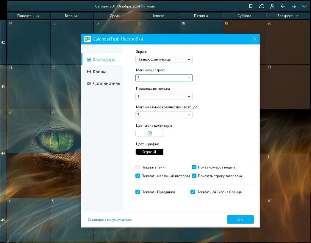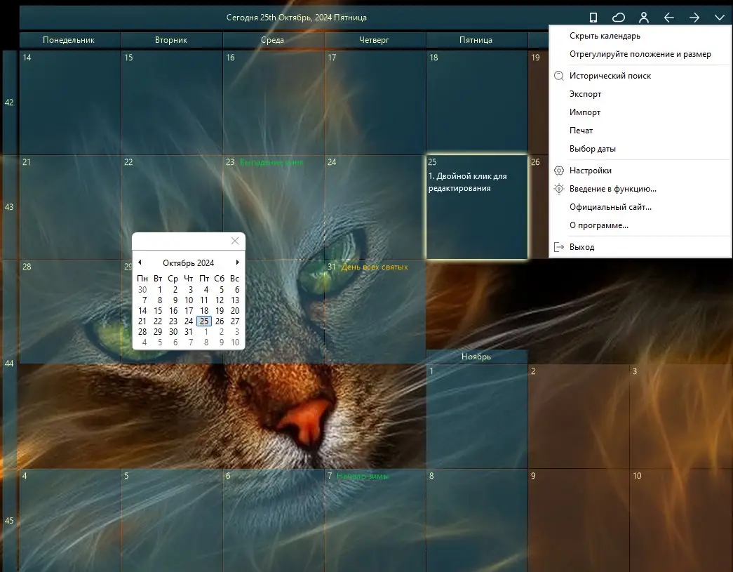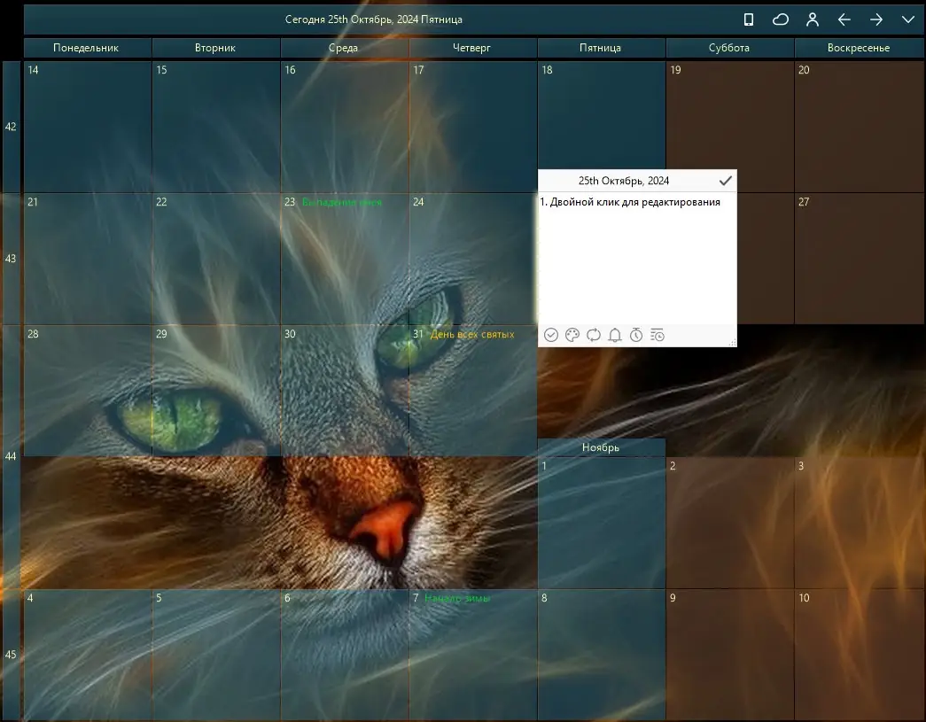 Desktop Calendar — это бесплатное приложение для операционной системы Windows, которое превращает стандартный календарь в многофункциональный инструмент планирования. Программа сочетает в себе простоту интерфейса и расширенные возможности для ведения дел, заметок и событий прямо на рабочем столе.