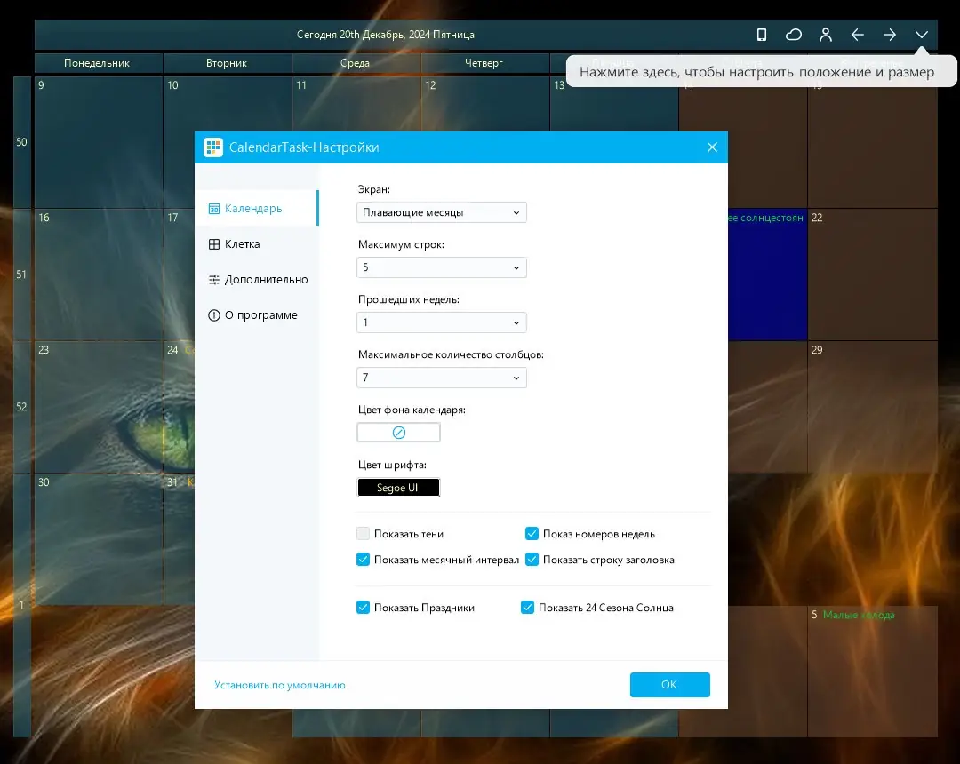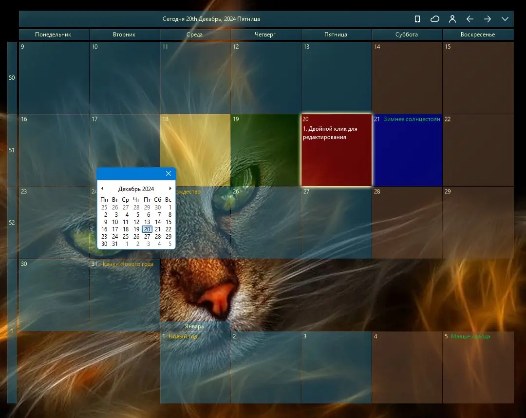 - Отображение календаря прямо на рабочем столе без необходимости открывать дополнительные окна.