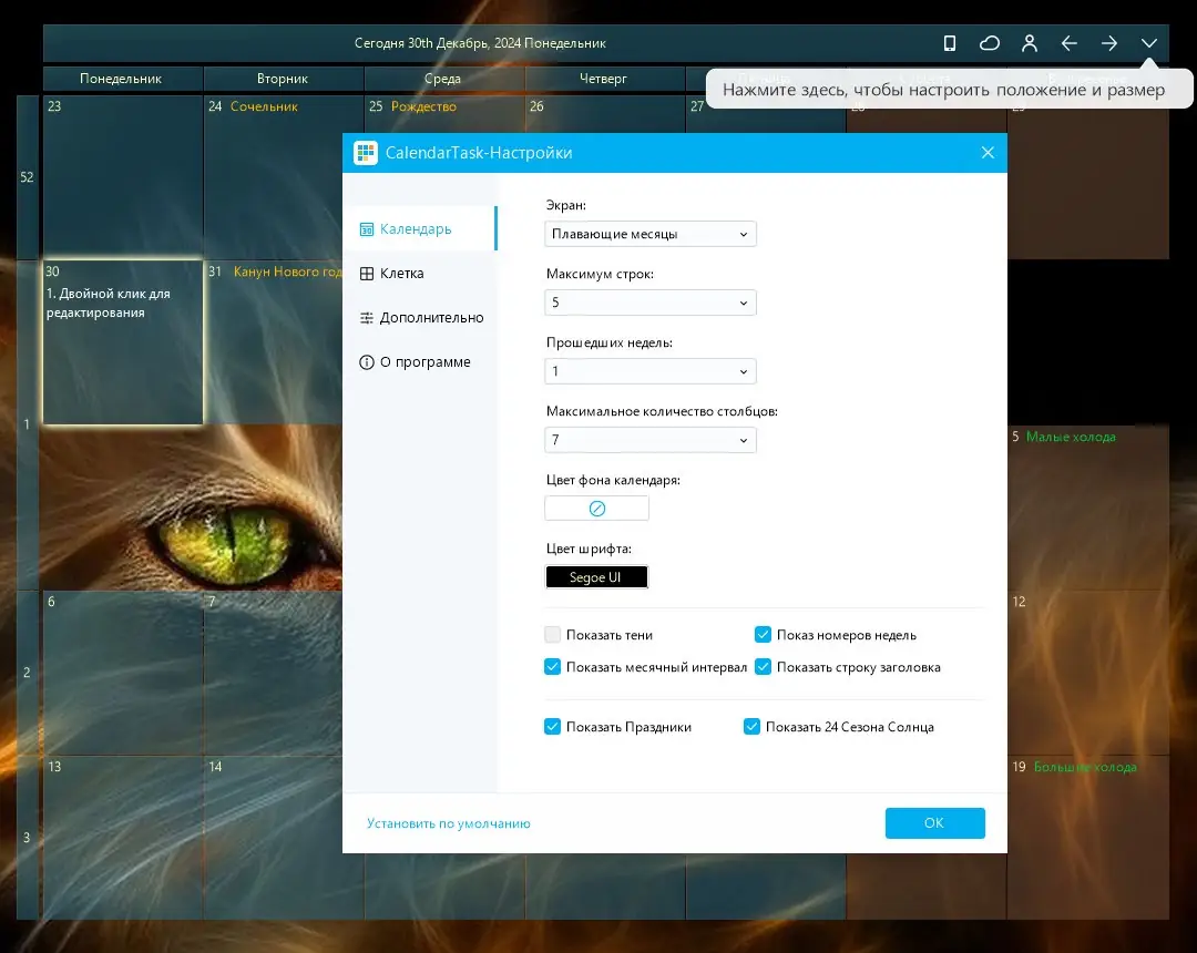 Как пользоваться Desktop Calendar