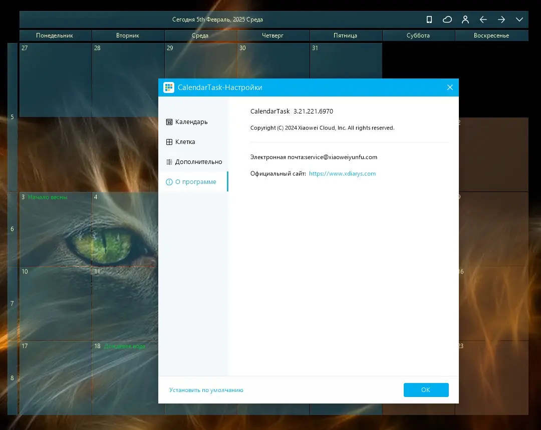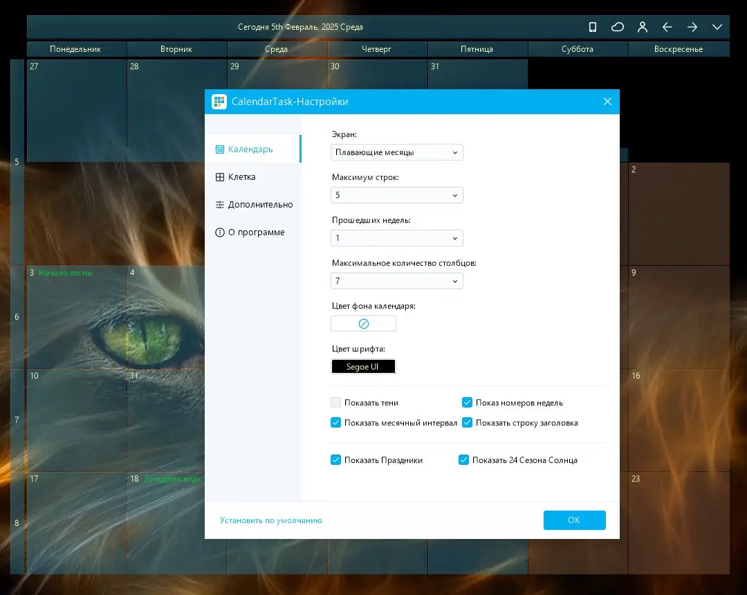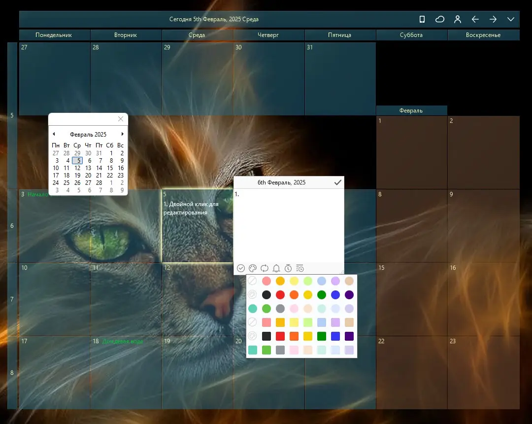 Desktop Calendar — это бесплатное приложение для операционной системы Windows, которое превращает обычный календарь в полноценный инструмент планирования. Программа сочетает в себе функции органайзера, позволяя отслеживать события, вести заметки и управлять списком дел прямо с рабочего стола.