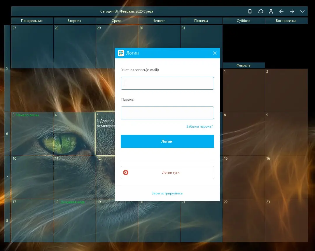 - Позволяет вести учёт событий, встреч и личных заметок в удобном формате.