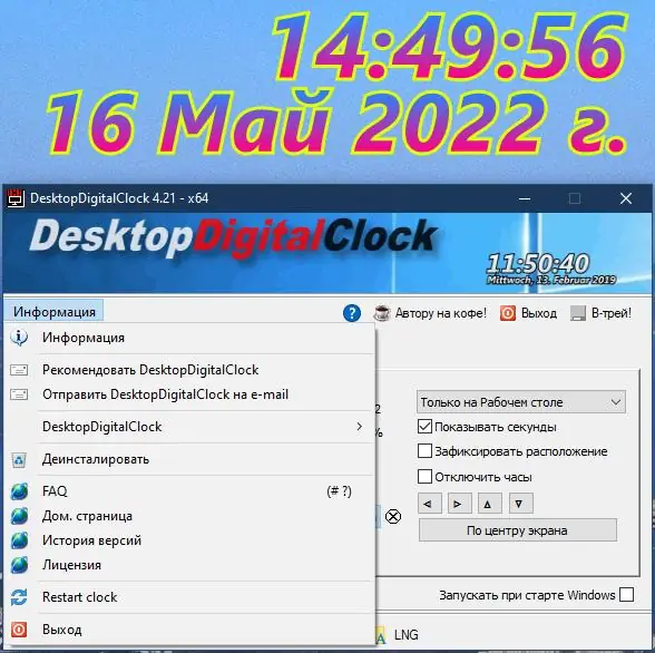 Использование приложения не вызывает затруднений даже у новичков. После запуска исполняемого файла часы сразу появляются на экране, и их можно переместить в нужную область с помощью перетаскивания. Через контекстное меню доступны настройки шрифта, изменения размера отображаемого времени, выбор темы и регулировка прозрачности. Для смены языка интерфейса на русский достаточно перейти в папку LNG и выбрать соответствующий файл локализации. Все изменения применяются мгновенно, без необходимости перезапускать программу.