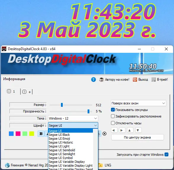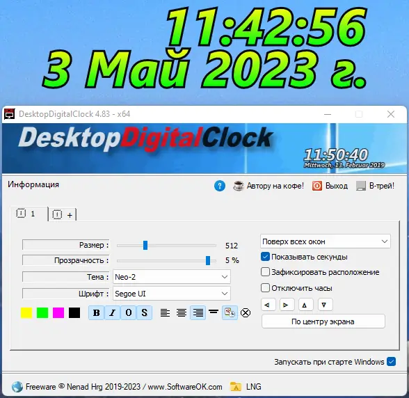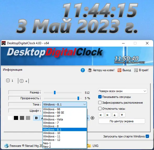 DesktopDigitalClock идеально подходит для тех, кто ценит простоту, функциональность и визуальную гибкость.