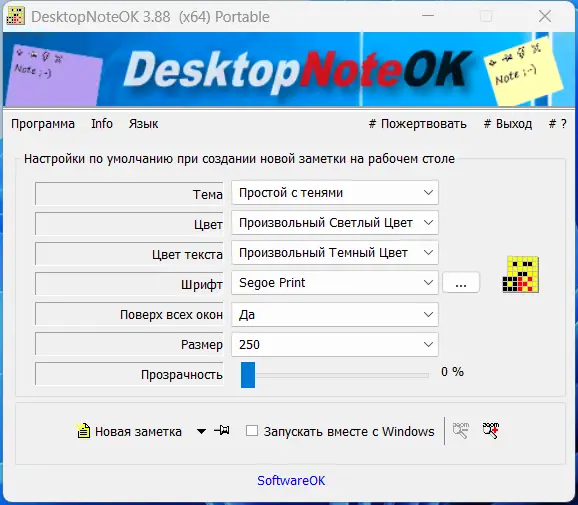 DesktopNoteOK — это легковесное приложение для размещения заметок прямо на рабочем столе. Программа позволяет быстро фиксировать важные идеи, задачи или напоминания, не переключаясь между окнами и приложениями.