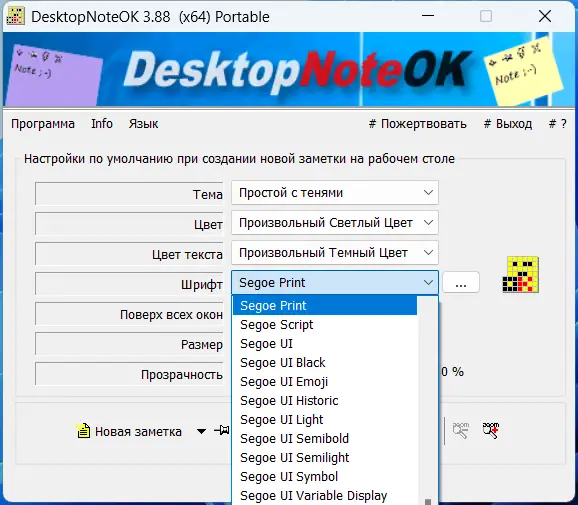 - Регулировка прозрачности окон заметок, что помогает сохранять обзор рабочего стола при их отображении.