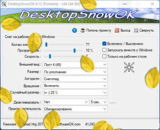 Работа с DesktopSnowOK
