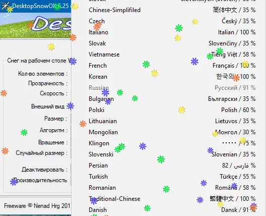 DesktopSnowOK не конфликтует с другими процессами и работает стабильно даже на слабых системах.
