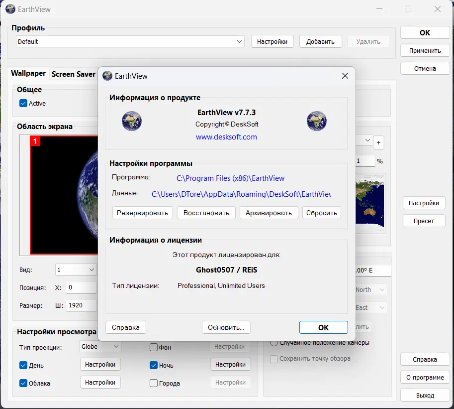 Программа доступна в различных версиях, включая полнофункциональную и портативную. Установка проста и не требует сложных действий. Дополнительные карты и русификатор включены в репак, что упрощает настройку для русскоязычных пользователей. EarthView подходит для операционных систем Windows 7, 8.1, 10 и 11 разрядностью 32 и 64 бита. Программа может работать как в фоновом режиме, так и в качестве полноценной заставки.