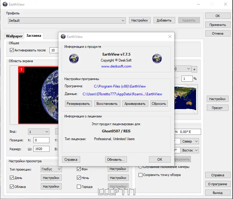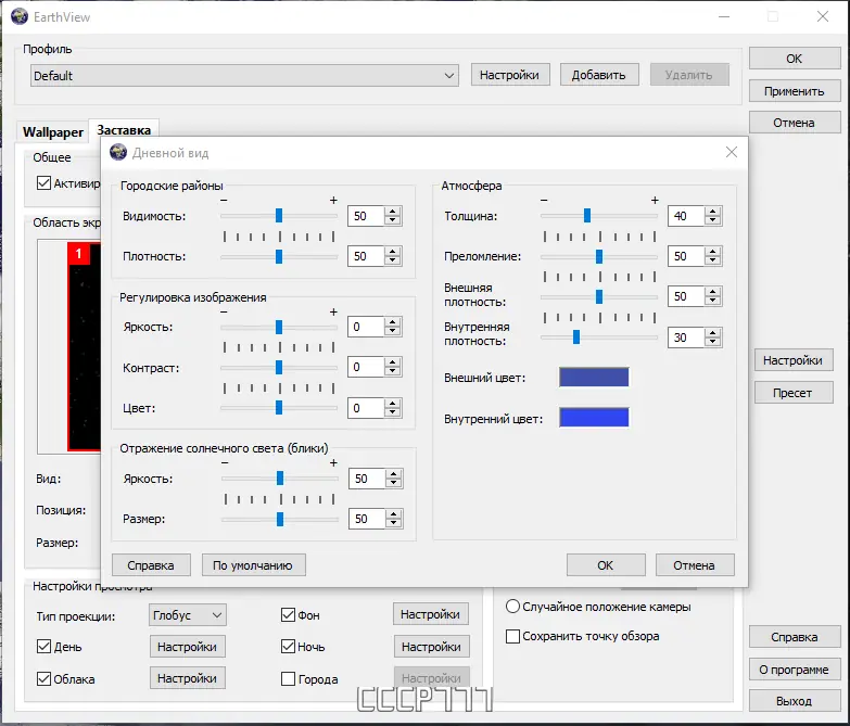 EarthView — это программа для динамических обоев и экранных заставок, отображающих детализированные виды Земли с реалистичной сменой дня и ночи, атмосферными эффектами, облаками и городскими огнями. Программа поддерживает высокое разрешение, включая 4K и выше, а также настраиваемые проекции, сезонные изменения и данные о погоде. Благодаря обширным возможностям кастомизации, EarthView подходит как для персонального использования, так и для корпоративных решений.