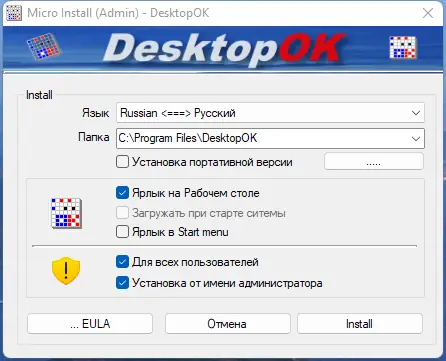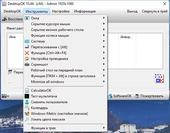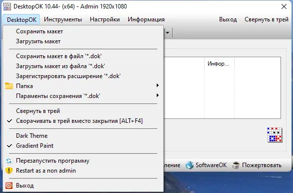 DesktopOK сочетает в себе простоту интерфейса и расширенные возможности управления рабочим столом, оставаясь при этом компактной и быстрой в работе.