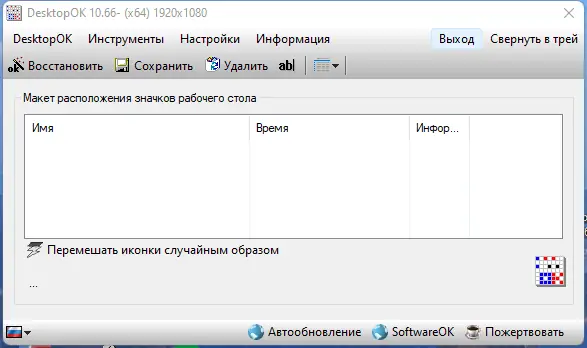 DesktopOK — это компактная и эффективная утилита для сохранения и восстановления положения иконок на рабочем столе Windows. Программа не требует установки, работает в фоне и помогает поддерживать порядок в расположении ярлыков при смене разрешения экрана или подключении внешних дисплеев. Подходит для повседневного использования как дома, так и в офисе.