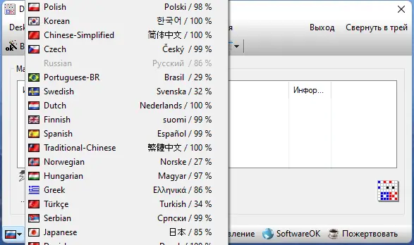 Использование DesktopOK не требует специальных знаний. После запуска приложение появляется в области уведомлений, где можно вручную сохранить текущее расположение иконок. Для автоматической работы достаточно включить режим автосохранения в настройках. При смене разрешения экрана или подключении второго монитора программа предложит восстановить сохранённую конфигурацию. Также доступны команды для изменения размера значков, их скрытия и быстрого сворачивания окон.