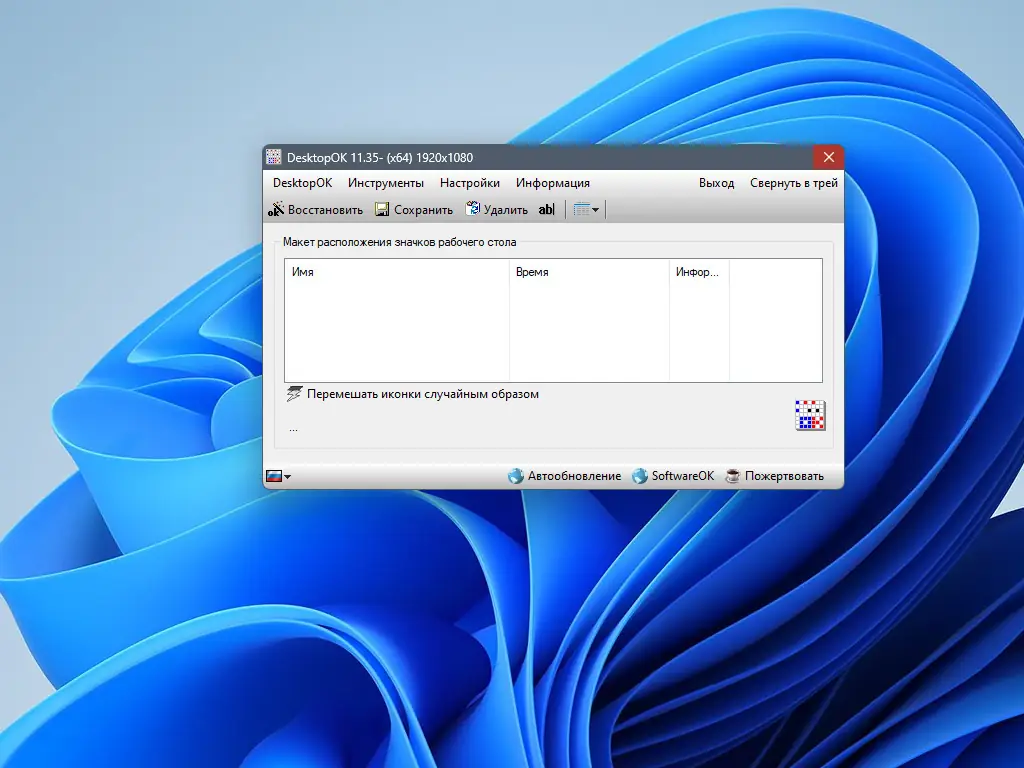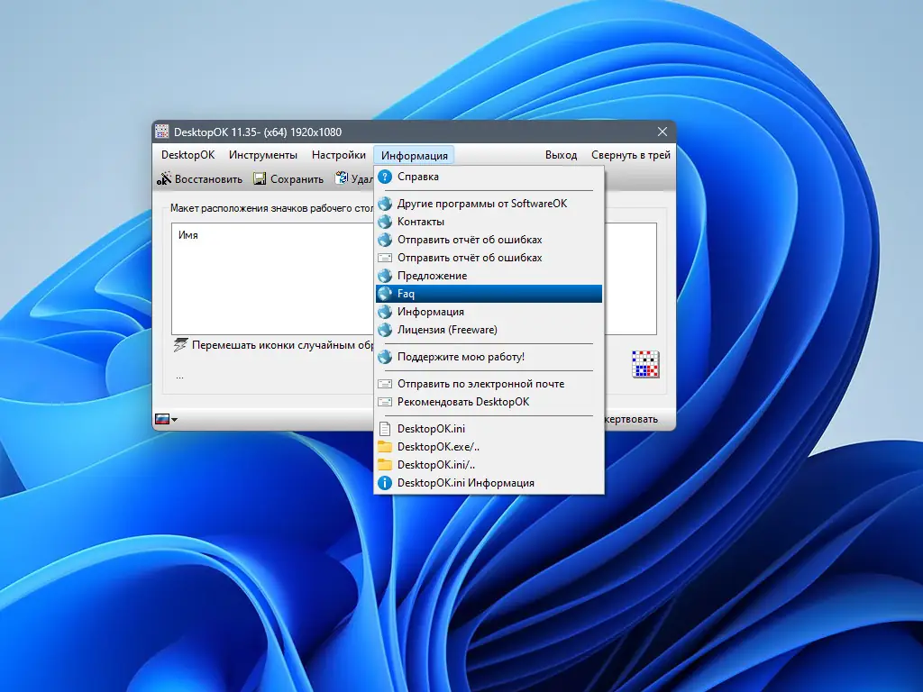 DesktopOK — компактная утилита для сохранения и восстановления расположения иконок на рабочем столе Windows при смене разрешения экрана. Программа особенно полезна для пользователей, часто подключающих внешние мониторы, проекторы или изменяющих настройки дисплея. Она автоматически фиксирует позиции значков и восстанавливает их, устраняя беспорядок после переключения между различными режимами отображения.
