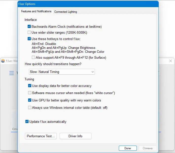 f.lux сочетает в себе простоту использования и глубокую настройку параметров, что делает её полезной как для обычных пользователей, так и для профессионалов. Программа не требует сложной конфигурации и быстро адаптируется под индивидуальные предпочтения. При этом она остаётся легковесной и не нагружает систему.
