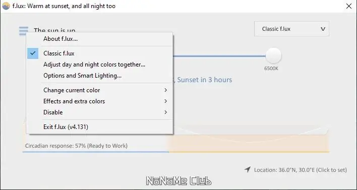 Утилита f.lux автоматически регулирует цветовую температуру экрана в зависимости от времени суток, снижая нагрузку на глаза и способствуя более комфортной работе за компьютером в темное время. Программа адаптирует оттенки дисплея под естественное освещение, уменьшая долю синего света вечером и ночью. Это помогает сохранить циркадные ритмы и улучшает качество сна.