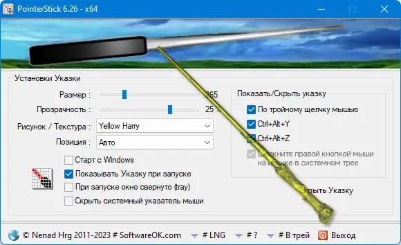 - Утилита преобразует курсор в яркую указку, заметную на любом фоне