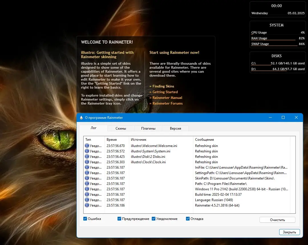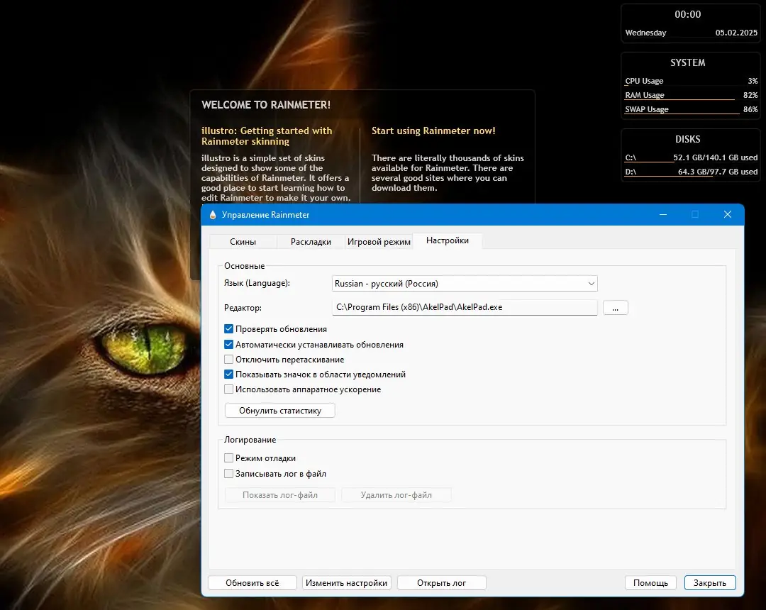 Работа с Rainmeter
