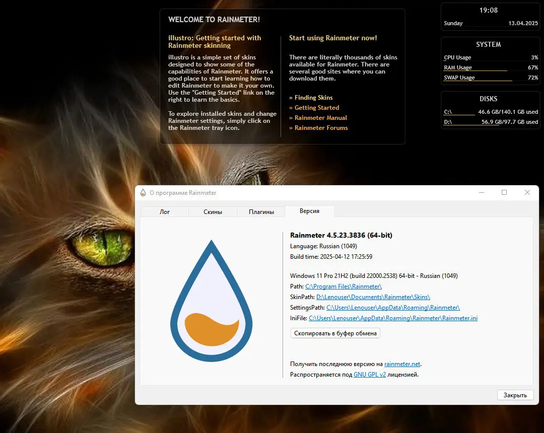 Работа с Rainmeter