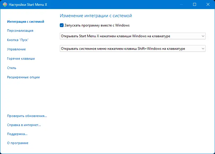 Описание Start Menu X